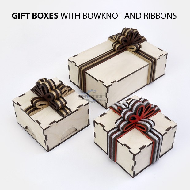 2) Gift box 2 with bowknot and ribbons (Small square box)